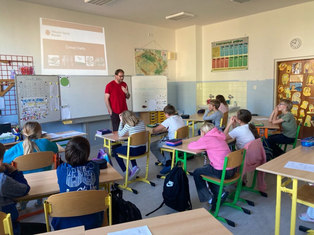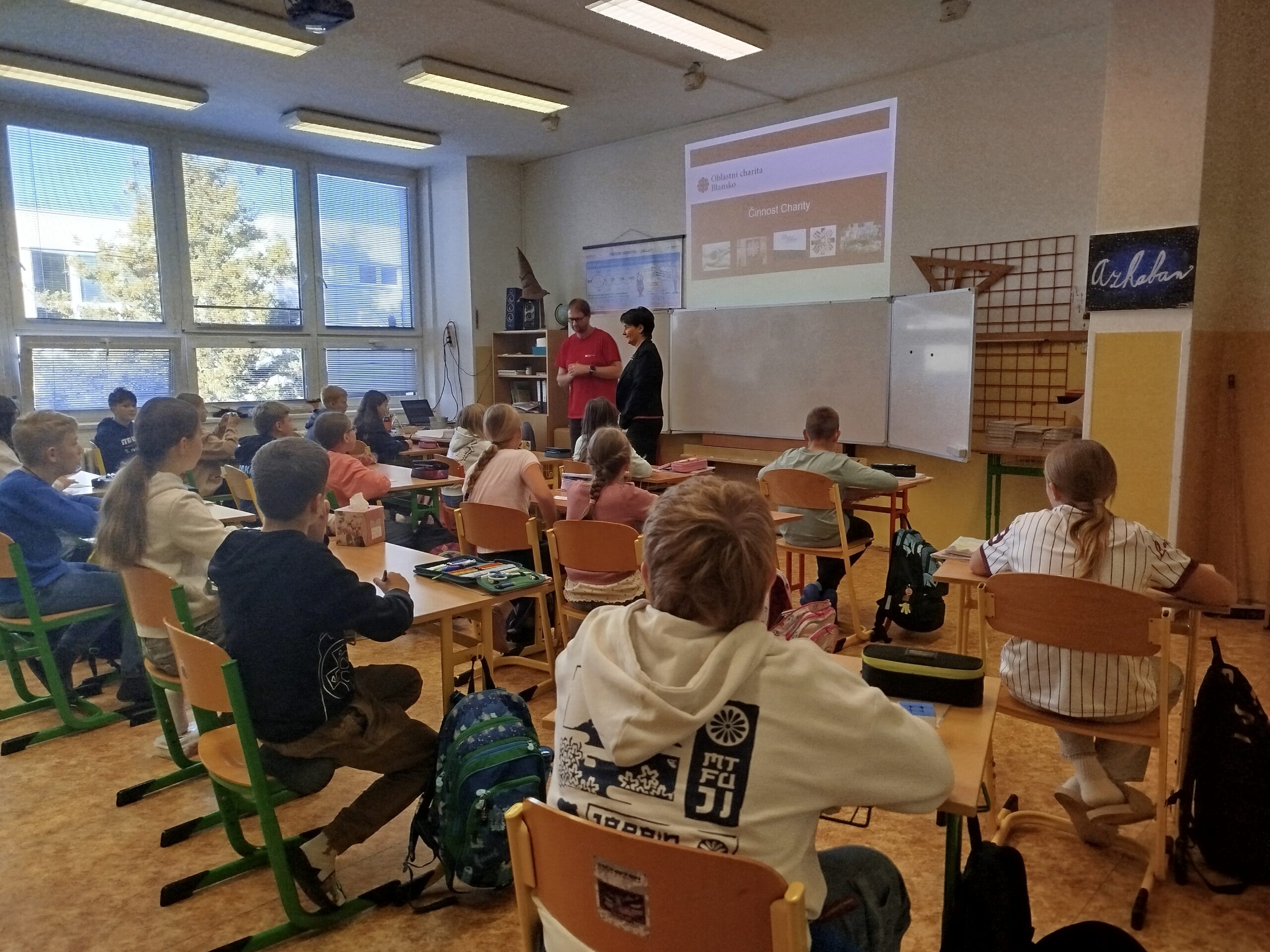 V listopadu zavítali na první stupeň naší školy pracovníci Oblastní charity Blansko, aby žákům představili svou činnost. V jednotlivých ročnících přiblížili pomoc lidem bez domova, rodinám bez střechy nad hlavou i osobám s postižením. Děti se s tématy obeznámily prostřednictvím tvořivých skupinových úkolů a malých projektů, které doprovázela živá diskuse.
