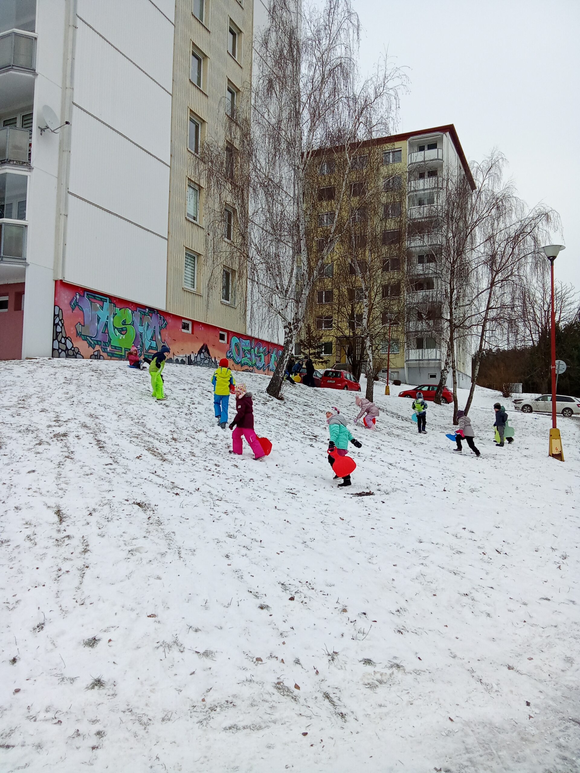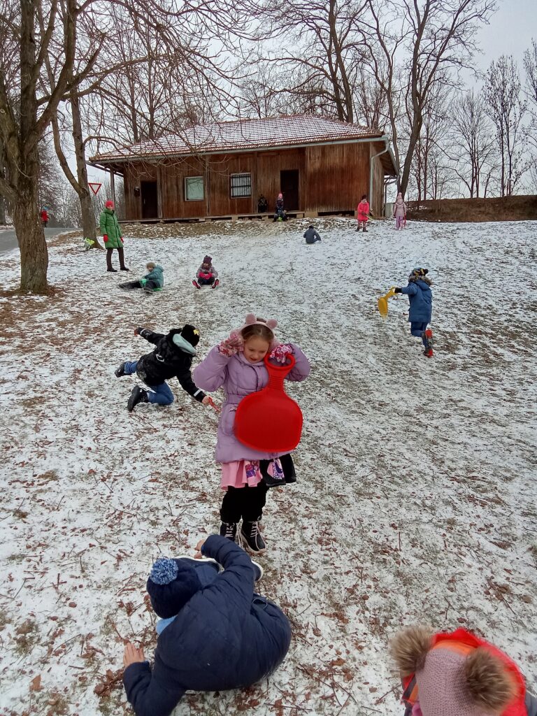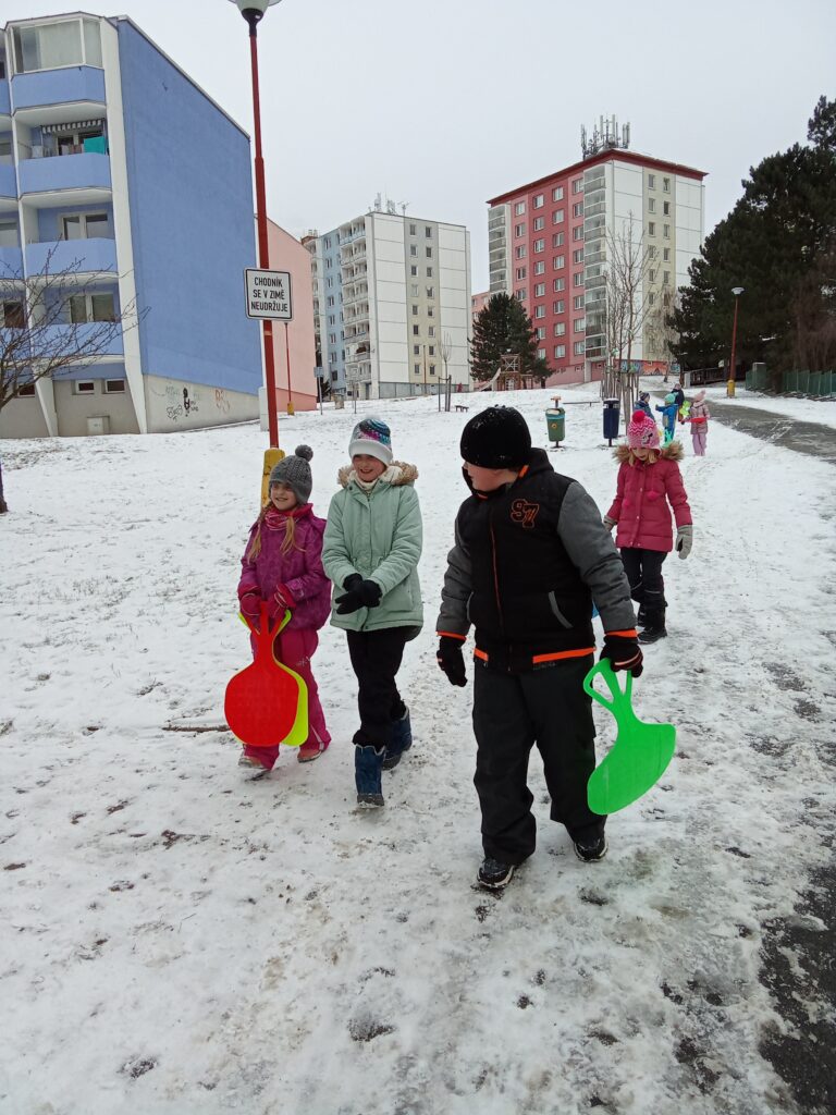 Děti ze 4. oddělení školní družiny si užily krásné zimní odpoledne na sněhu. Společně vyrazily bobovat na kopec, kde panovala veselá nálada. Nechyběl smích, soutěžení ani vzájemná pomoc při tahání bobů zpět nahoru. Děti si pobyt venku moc užily a domů se vracely příjemně unavené a plné zážitků.