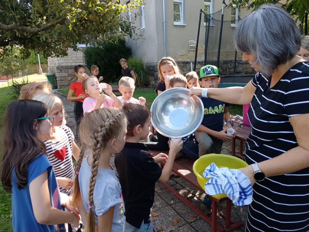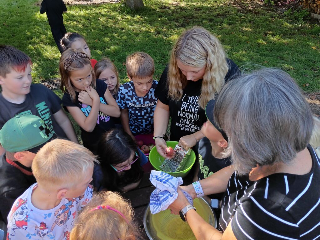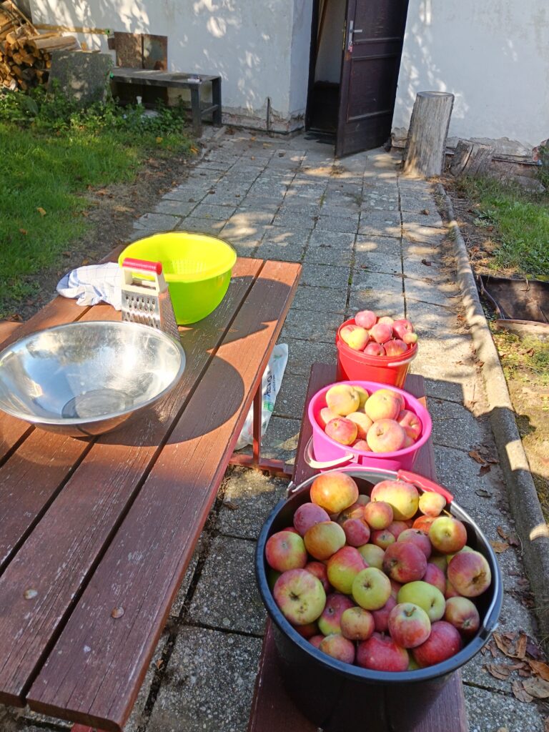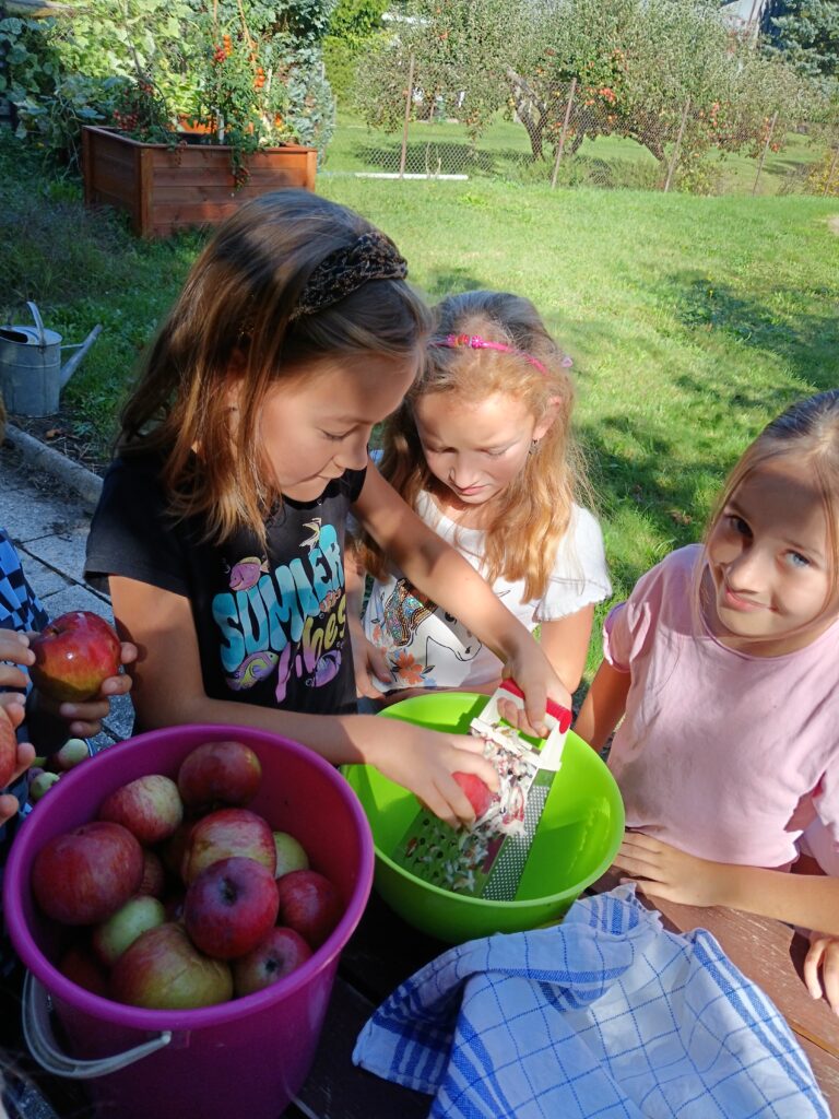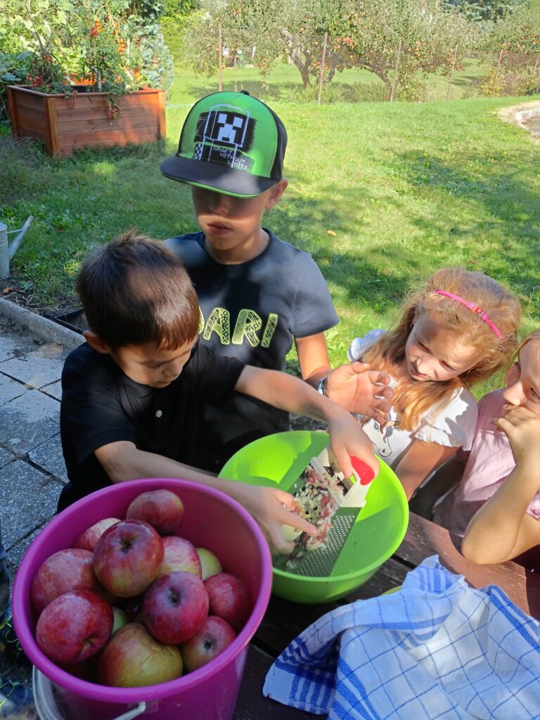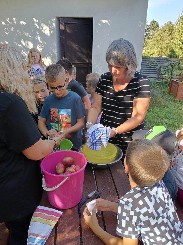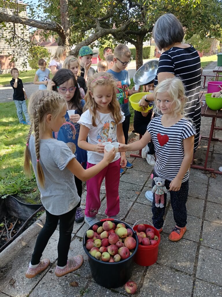 Jednou z několika aktivit, které v podzimních měsících naše děti čekají ve školní družině je „jablíčkobraní“. Náplní odpoledne byla sklizeň a zpracování úrody jablek ze školní zahrady. Nejprve jsme si vyprávěli o podzimních pracích na zahradě a potom jsme vyrazili ven, kde jsme sklidili část úrody a pustili jsme se do zpracování jablek. Společně jsme připravili jablka ke strouhání a moštování. Čerstvý mošt všem moc chutnal.