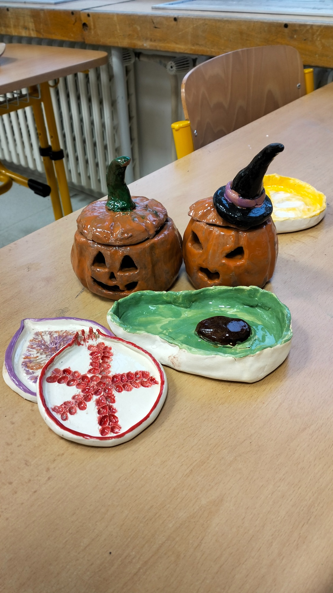 I letos je na škole otevřen pro nadšené kreativce keramický kroužek. Za první pololetí jsme zde zpracovali několik aktuálních témat – „Léto a voda“ hned po prázdninách, „Podzimní plody“, „Mikulášské a vánoční tvoření“. Některé z těchto výrobků jsme nafotili, abyste si je mohli prohlédnout.