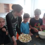 Při společné práci panovala skvělá nálada, nechyběl úsměv ani týmová spolupráce. Jídlo chutná nejlépe, když se tvoří s radostí a společnými silami. Hodina se žákům velmi líbila a už se těšíme, až si podobnou výuku zase zopakujeme!