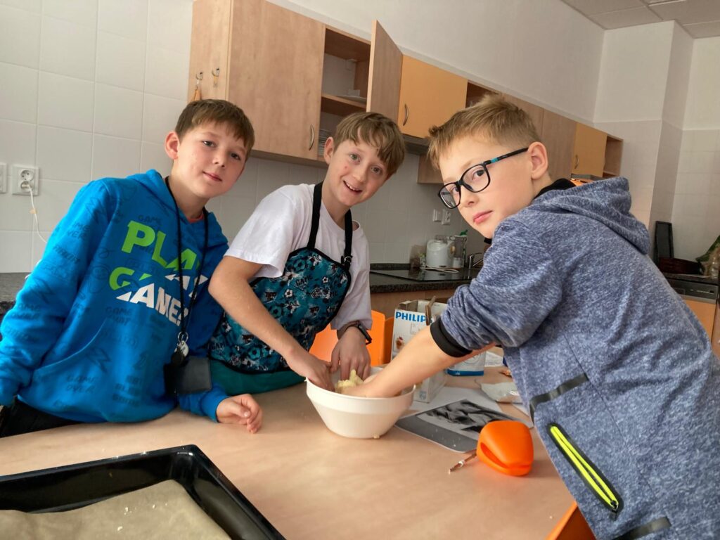 Začátkem října se žáci 5.B proměnili v šikovné kuchaře a kuchařky. Ve školní kuchyňce jsme si užili ozvláštněnou hodinu pracovních činností s názvem „Minecraftové vaření“. Připravovali jsme netradiční recepty inspirované oblíbenou hrou Minecraft – například zlaté jablko nebo hranaté sušenky. Vyzkoušeli jsme si také přípravu oblíbených pomazánek, které si žáci sami zdobeně servírovali.