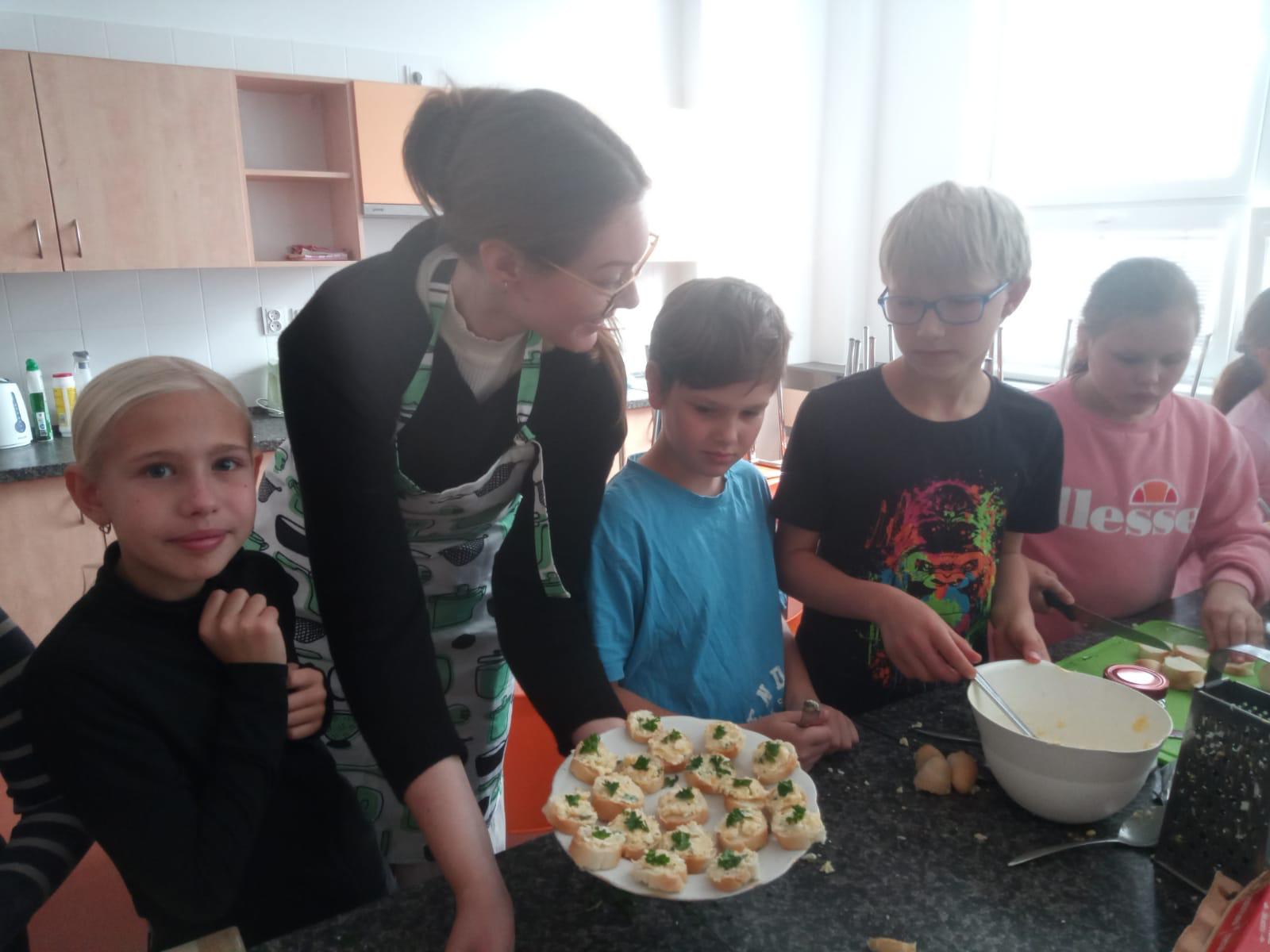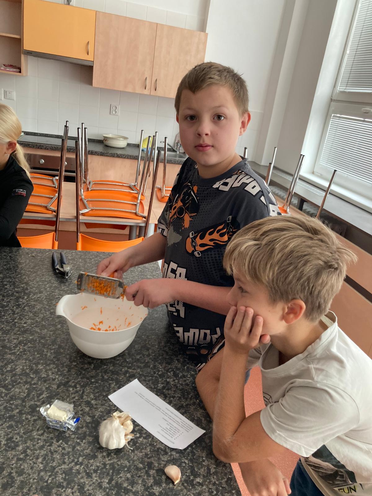 Při společné práci panovala skvělá nálada, nechyběl úsměv ani týmová spolupráce. Jídlo chutná nejlépe, když se tvoří s radostí a společnými silami. Hodina se žákům velmi líbila a už se těšíme, až si podobnou výuku zase zopakujeme!