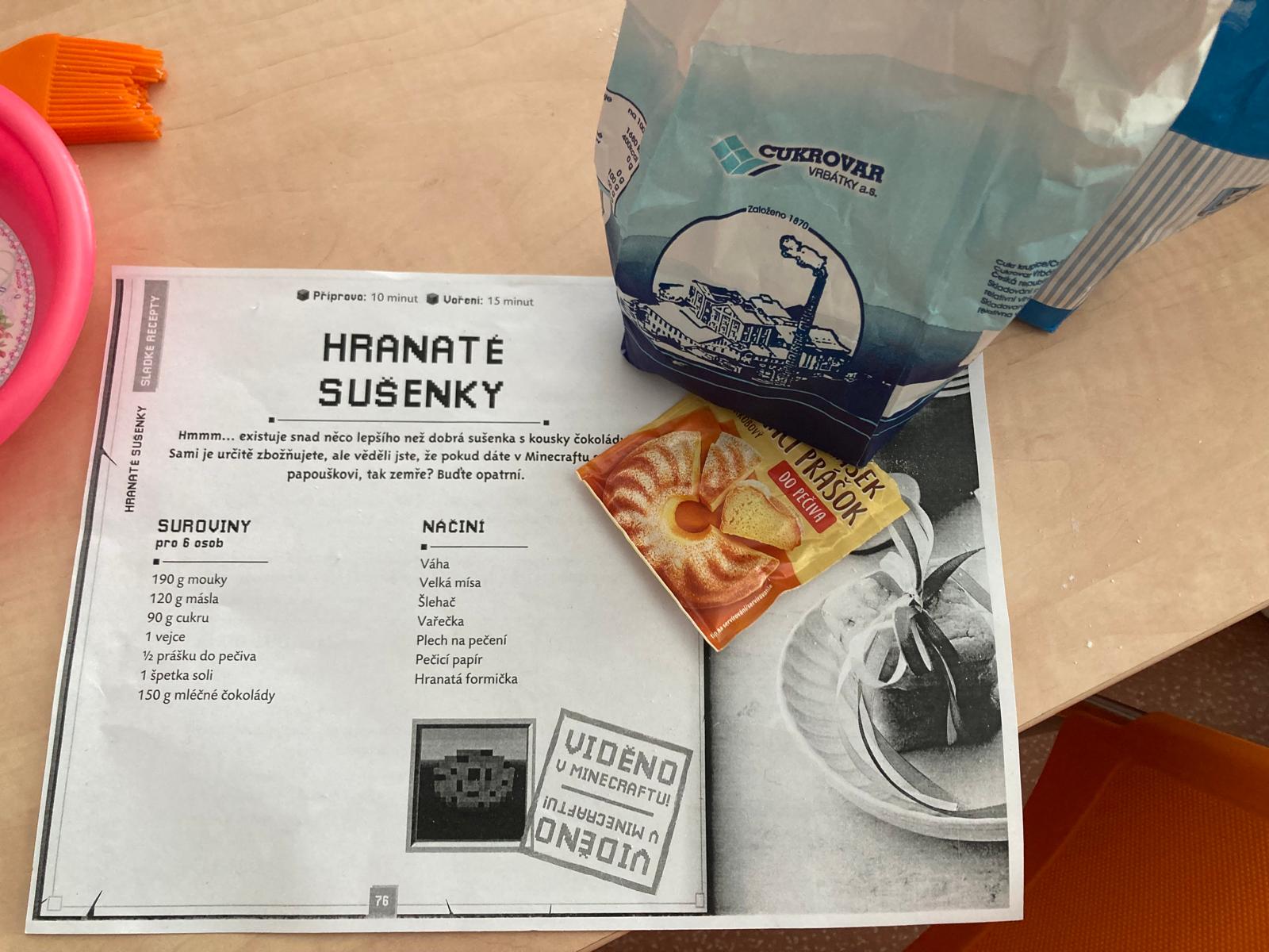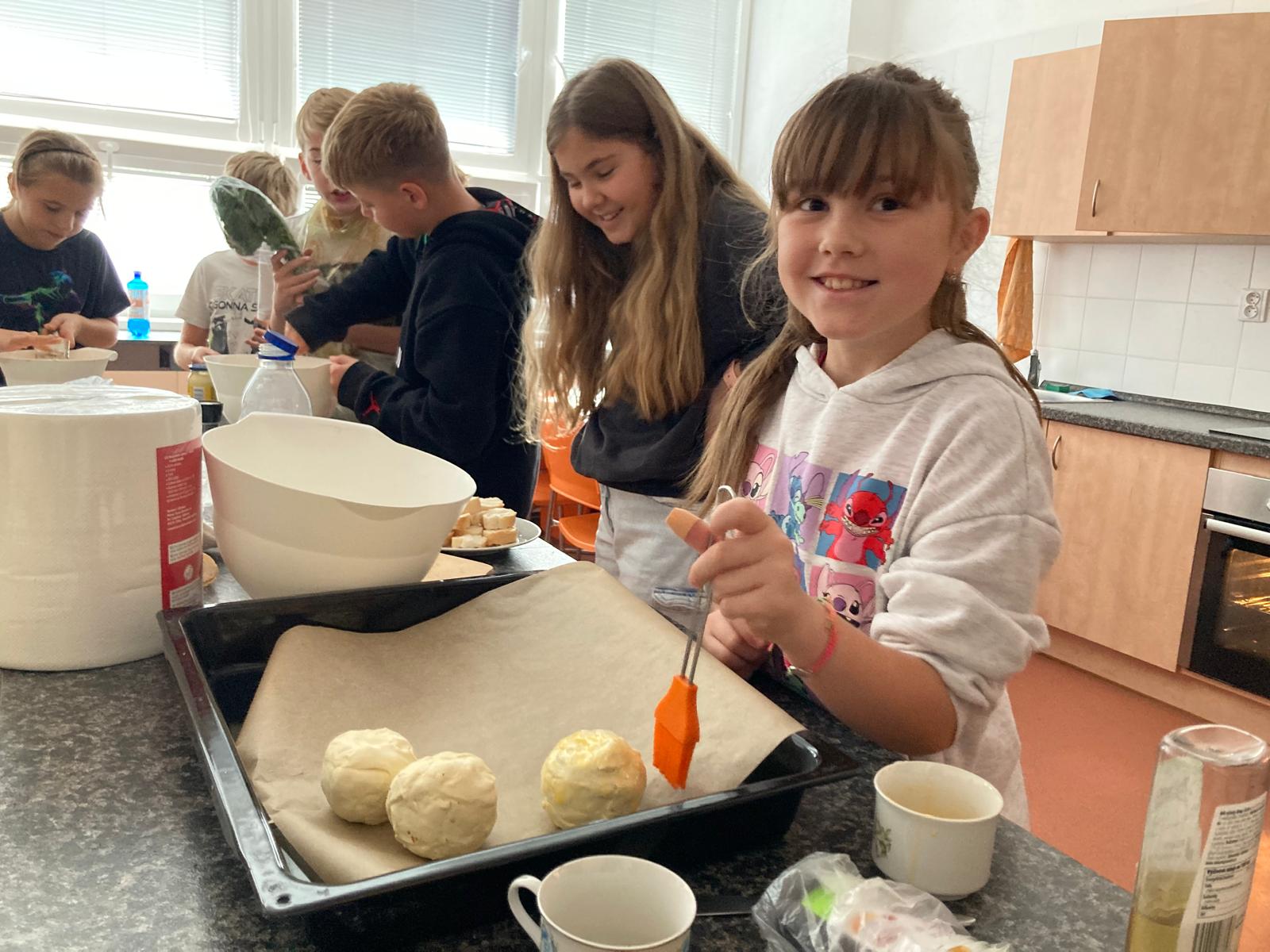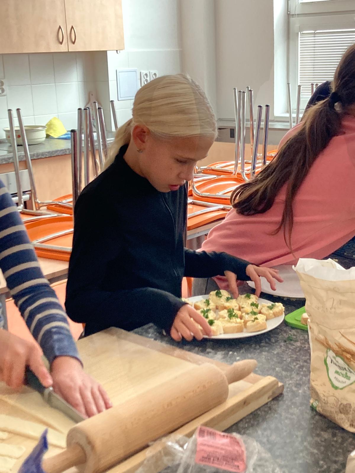 Začátkem října se žáci 5.B proměnili v šikovné kuchaře a kuchařky. Ve školní kuchyňce jsme si užili ozvláštněnou hodinu pracovních činností s názvem „Minecraftové vaření“. Připravovali jsme netradiční recepty inspirované oblíbenou hrou Minecraft – například zlaté jablko nebo hranaté sušenky. Vyzkoušeli jsme si také přípravu oblíbených pomazánek, které si žáci sami zdobeně servírovali.