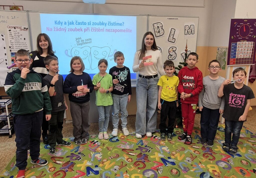 Na naší škole proběhl program “Zdravé zuby”, který vedly studentky zubního lékařství v Brně. Žákům představily základní informace o stavbě zubu, vzniku kazu a důležitosti každodenní prevence. Součástí byla i praktická ukázka správného čištění šetrnou technikou a prohlídka dentálních pomůcek – mezizubních a jednosvazkových kartáčků.
