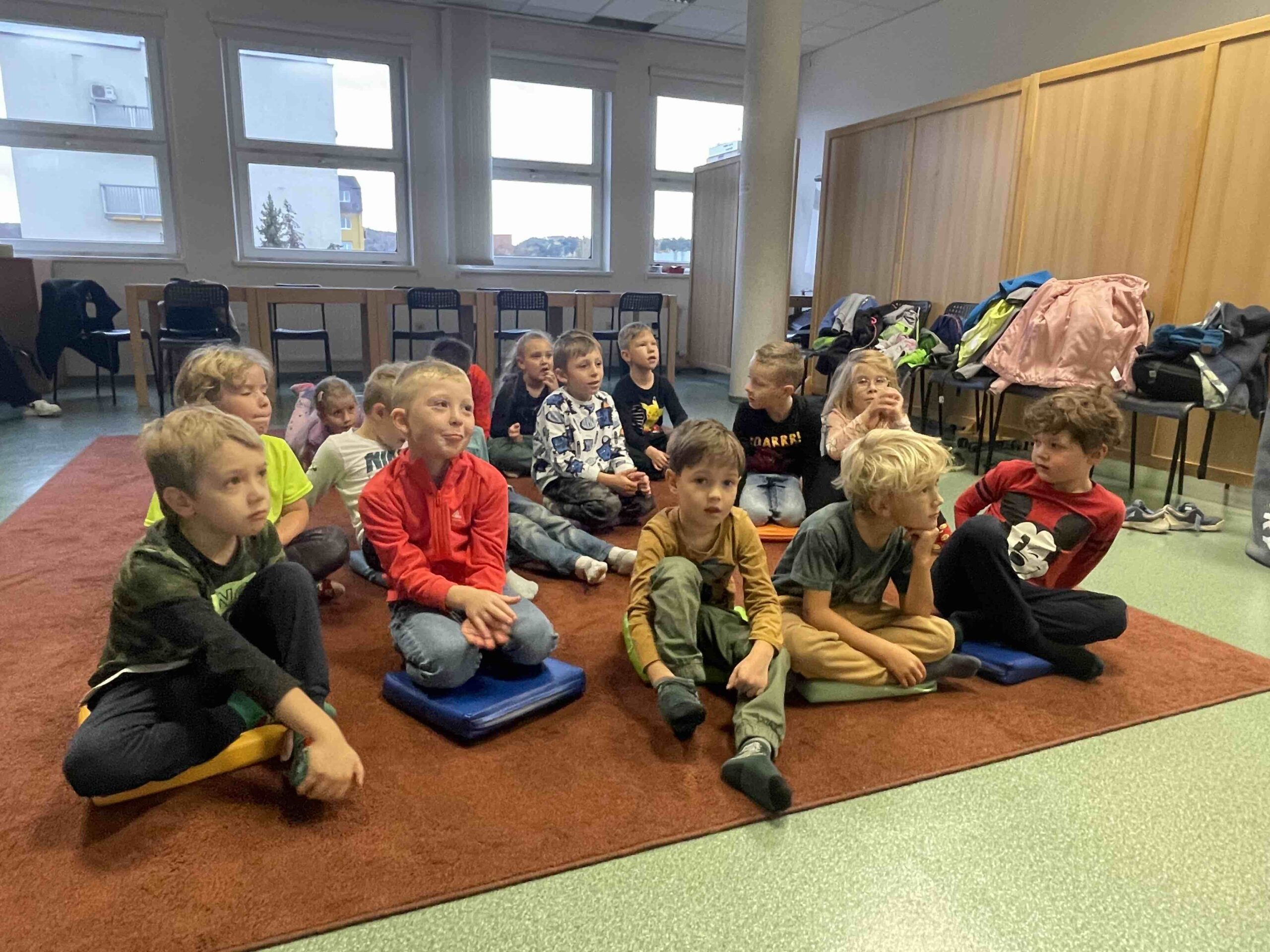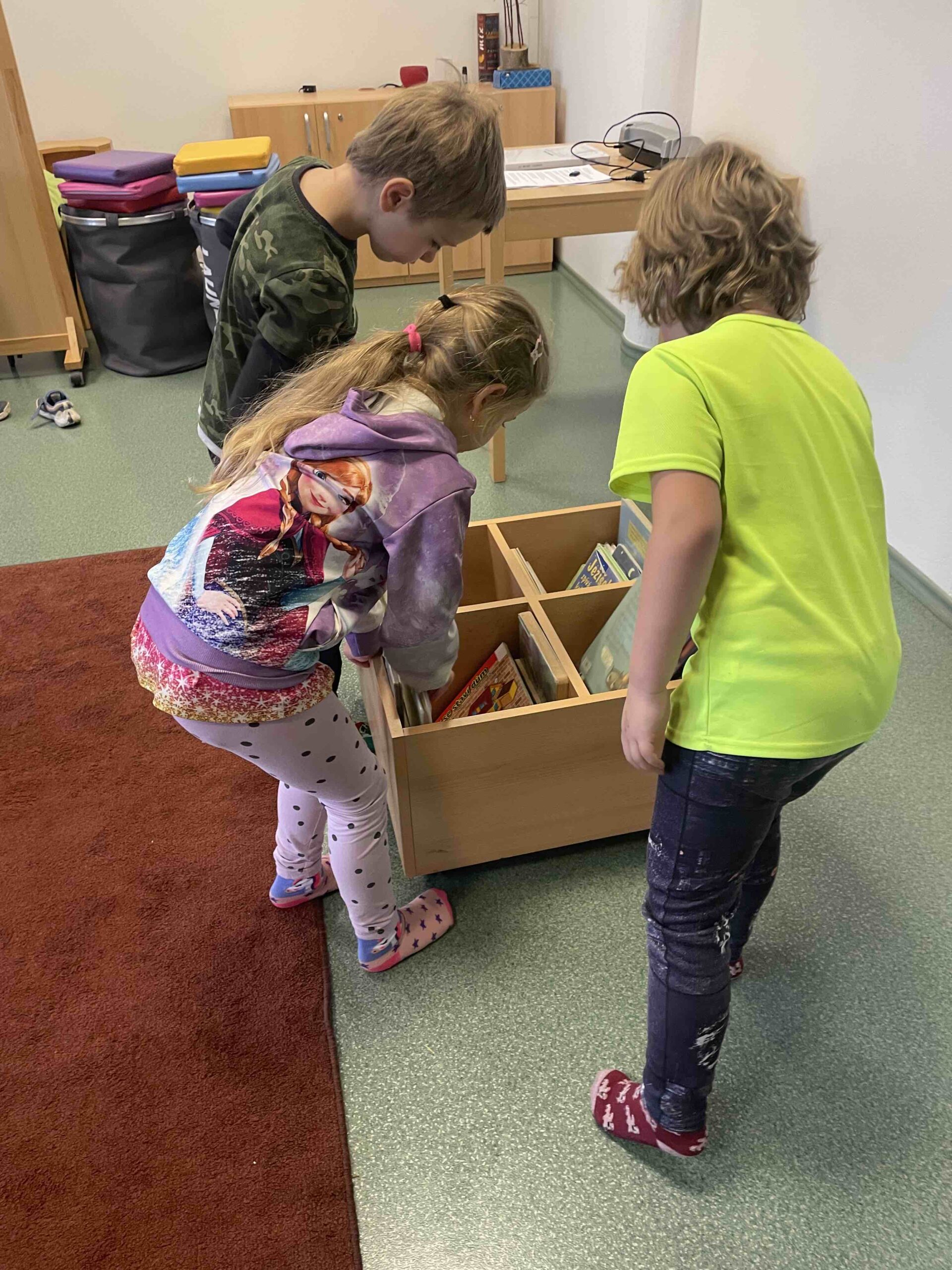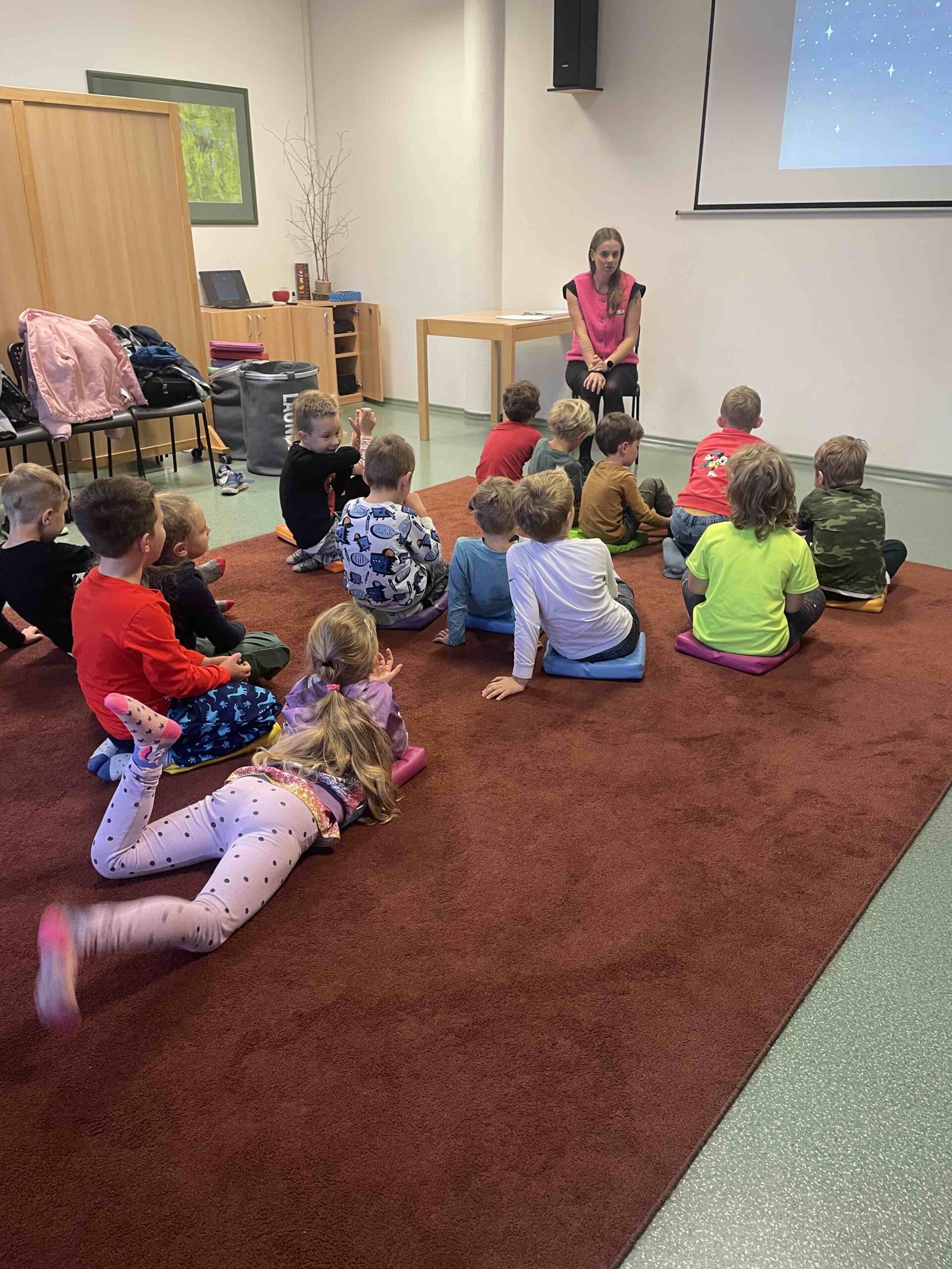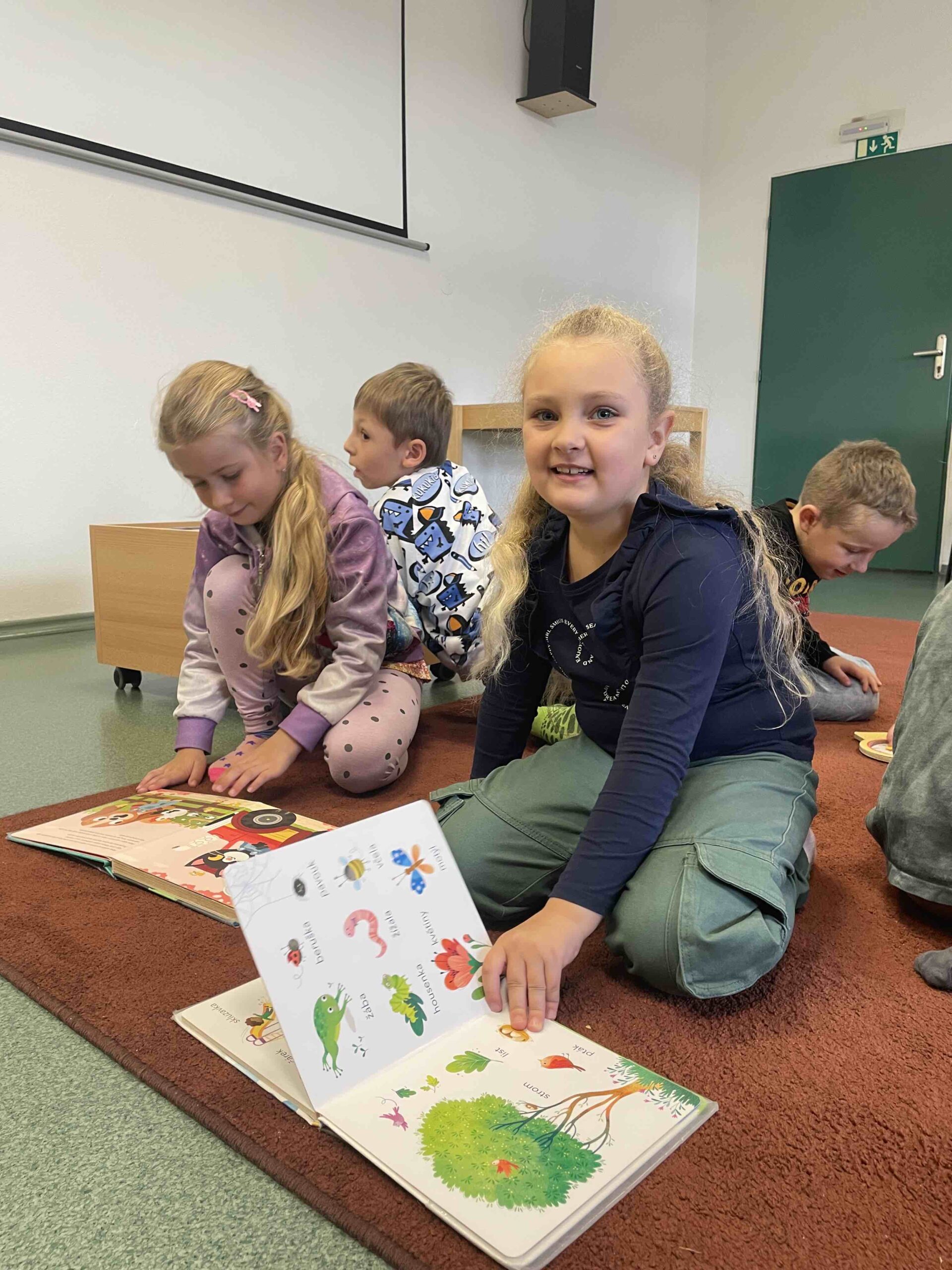 Po skončení programu jsme se vydali zpět do školy přes krásně zbarvenou podzimní krajinu. Cesta nám rychle uběhla – pozorovali jsme spadané listí, sbírali přírodniny a povídali si o tom, co se nám v knihovně nejvíce líbilo.