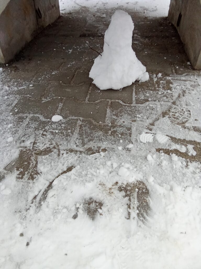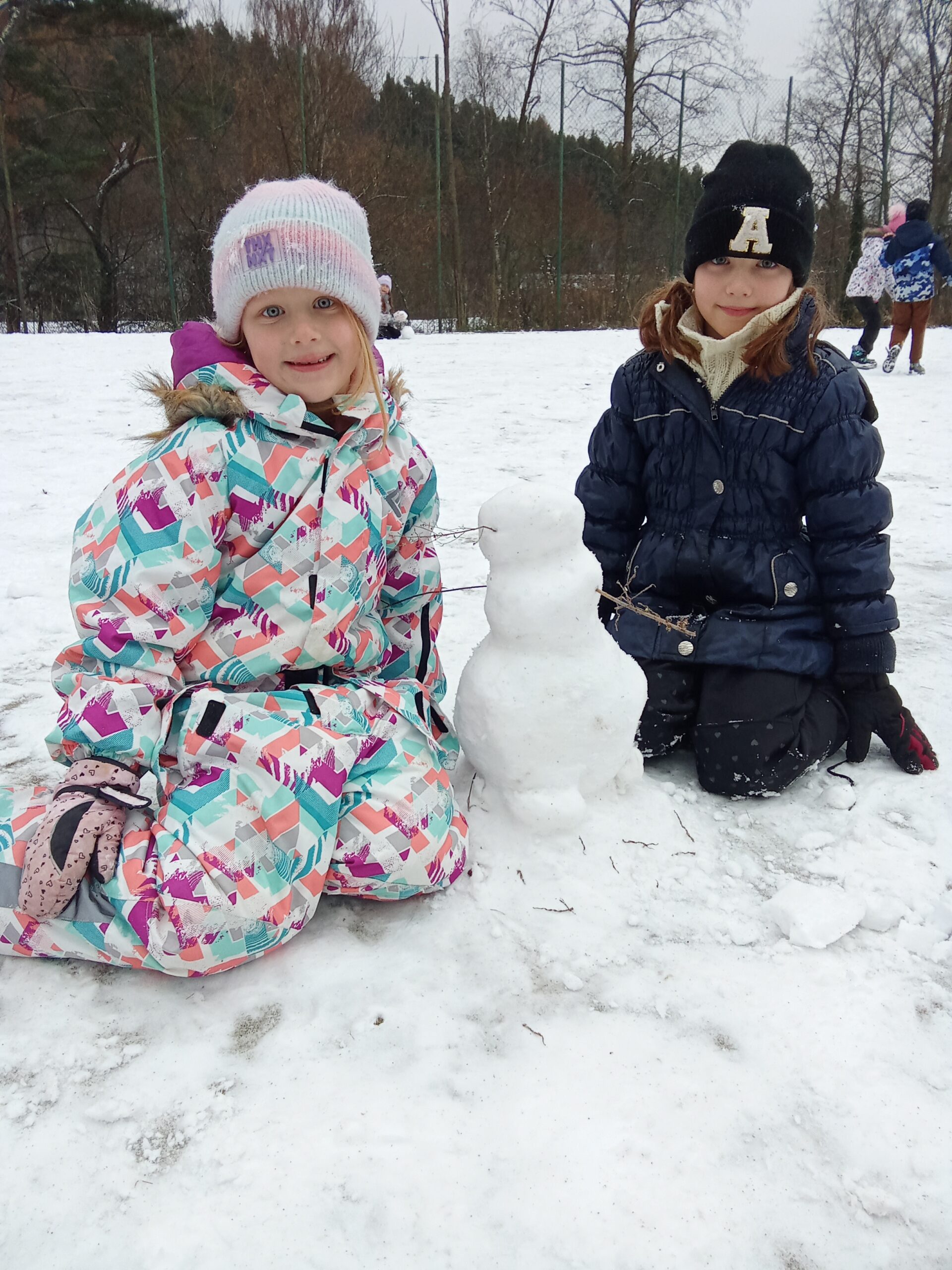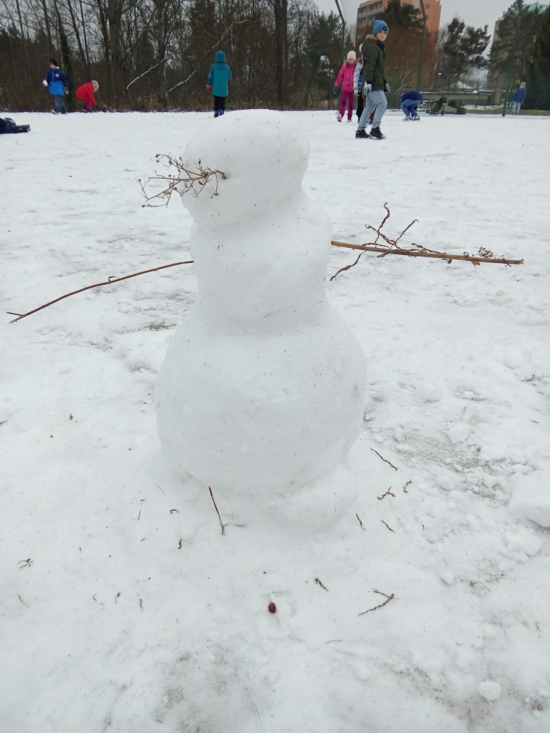 Začalo to hromadným kutálením sněhových koulí. Některé děti se hned pustily do výroby těl, zatímco jiné pečlivě tvarovaly hlavy a vybíraly lístečky na oči. Nechyběly ani klacíky na ruce.