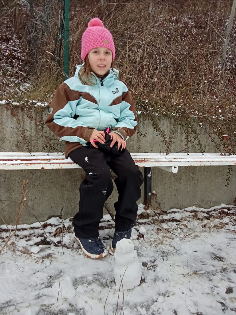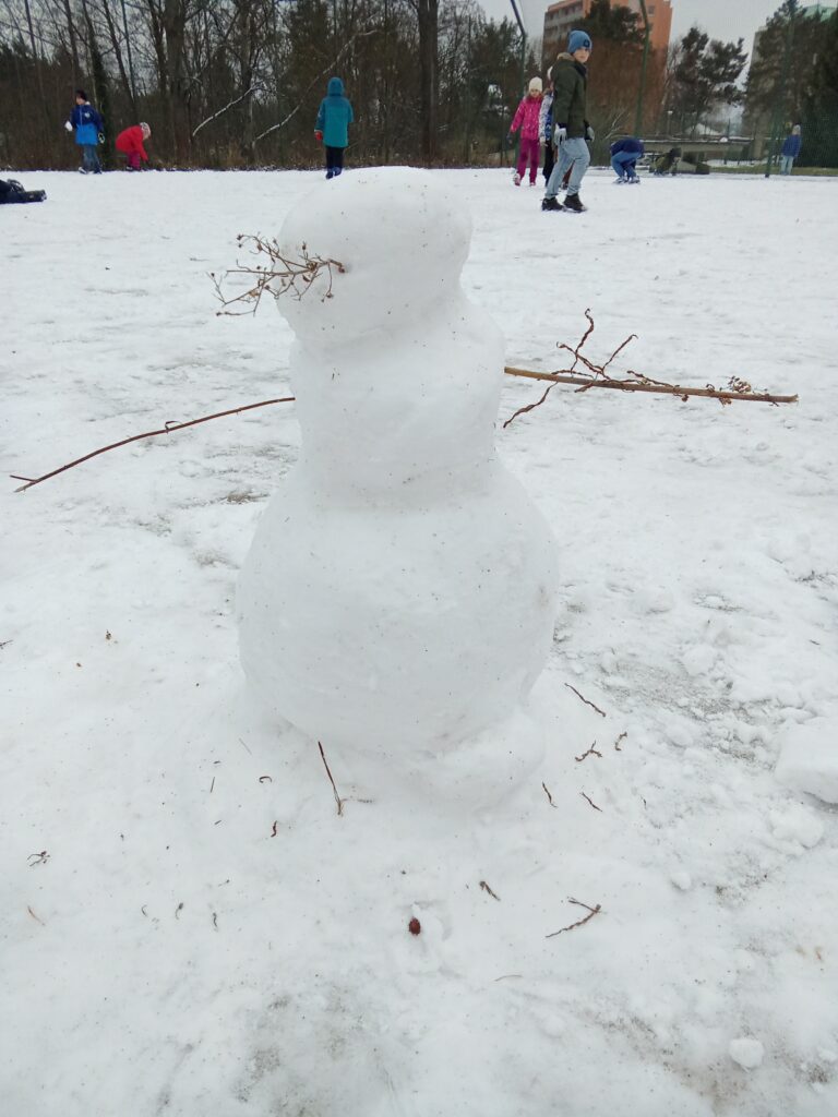 První sníh letos pokryl školní hřiště jako bílý peřinový koberec a děti v družině nemohly dospat, až si ho pořádně užijí. Po vyučování už běžely ven, každý s čepicí naraženou na uši a rukavicemi připravenými na pořádnou sněhovou práci.