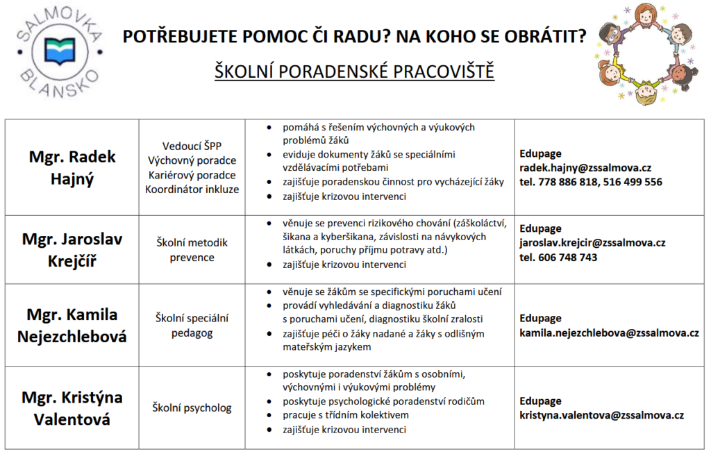 Vedoucí ŠPP, výchovný poradce, kariérový poradce, koordinátor inkluze
