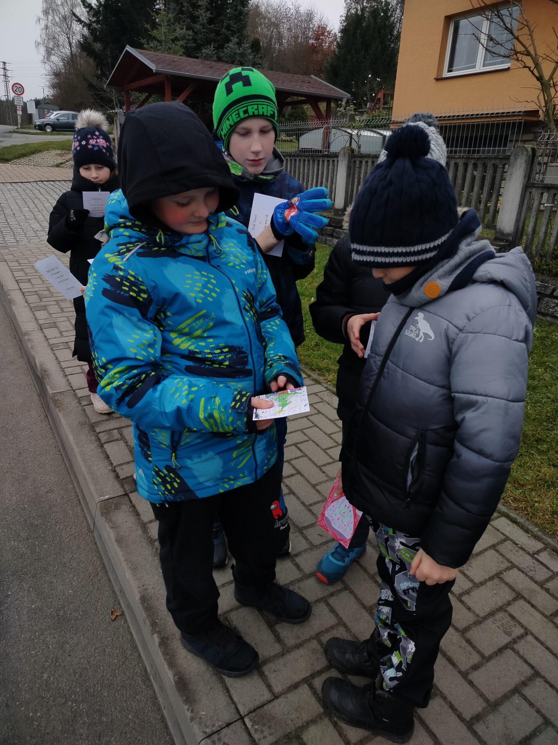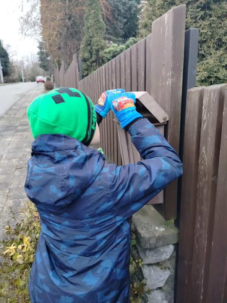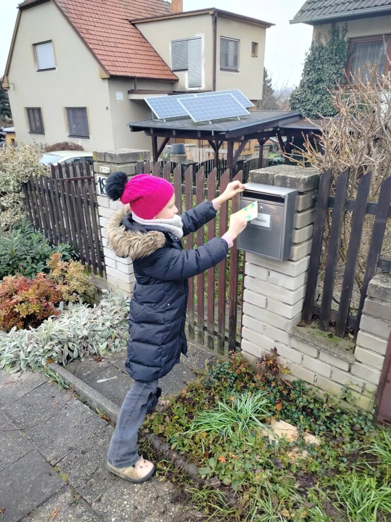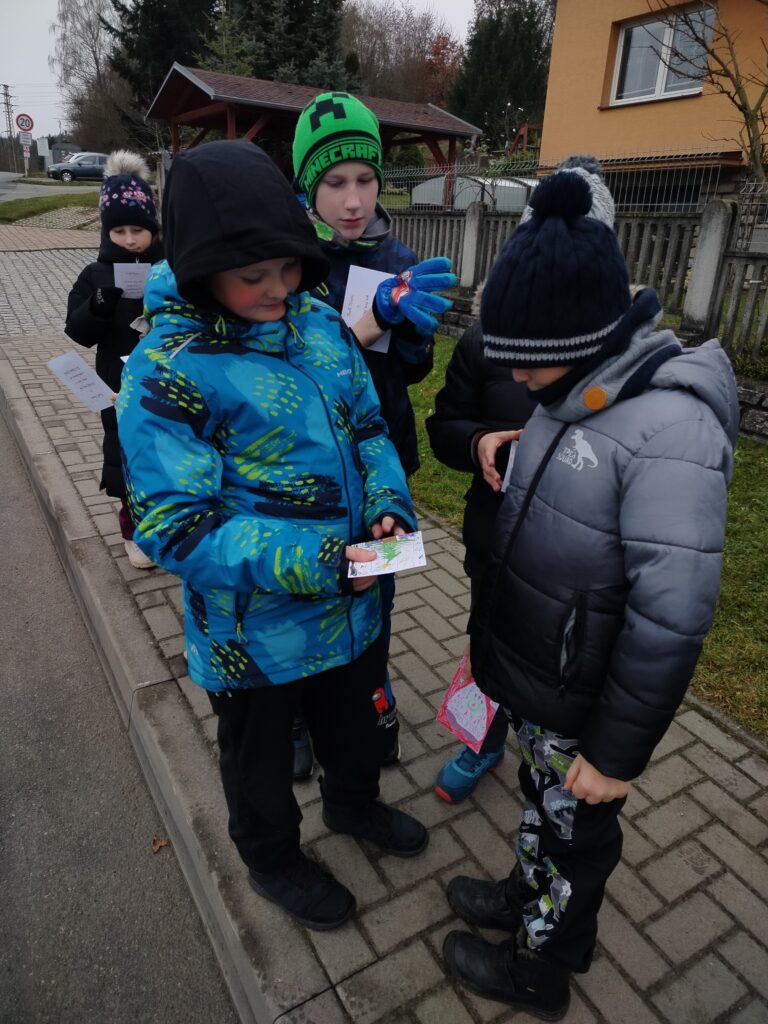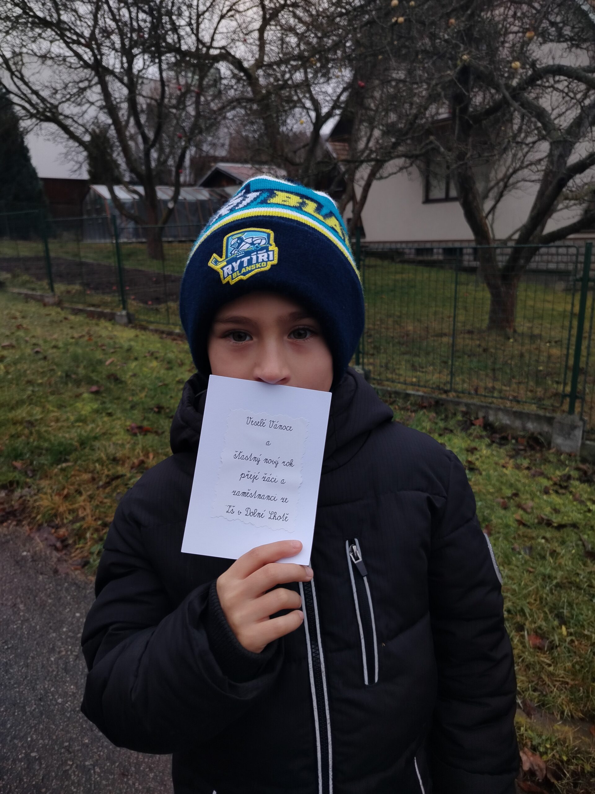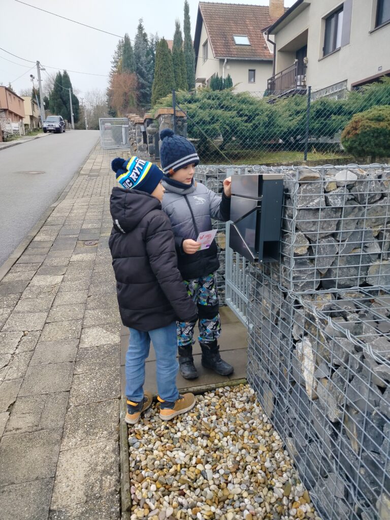 Naše děti se v předvánočním čase s radostí pustily do tvoření a malovaly krásné obrázky s vánoční a zimní tématikou. Na každý obrázek jsme přilepili  vánoční přání a společně jsme se vydali na procházku po Dolní Lhotě. Přáníčka jsme roznášeli do schránek všem obyvatelům, aby jim udělala radost a vykouzlila úsměv na tváři.