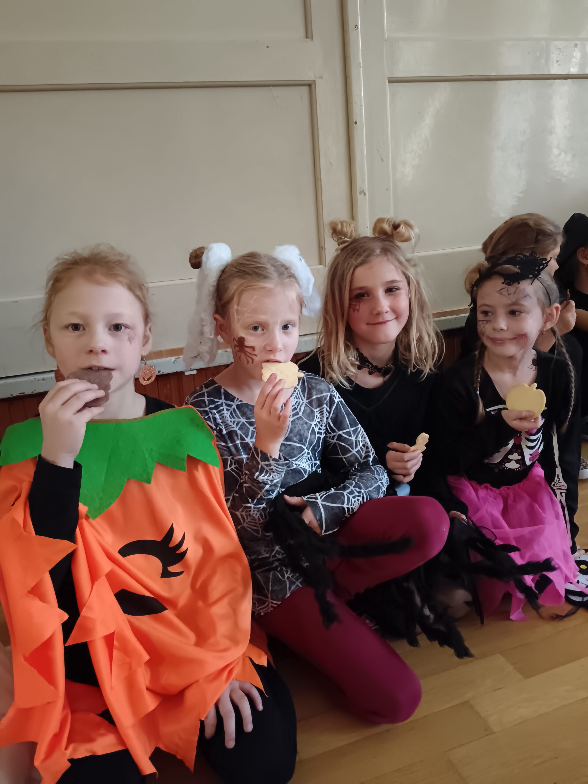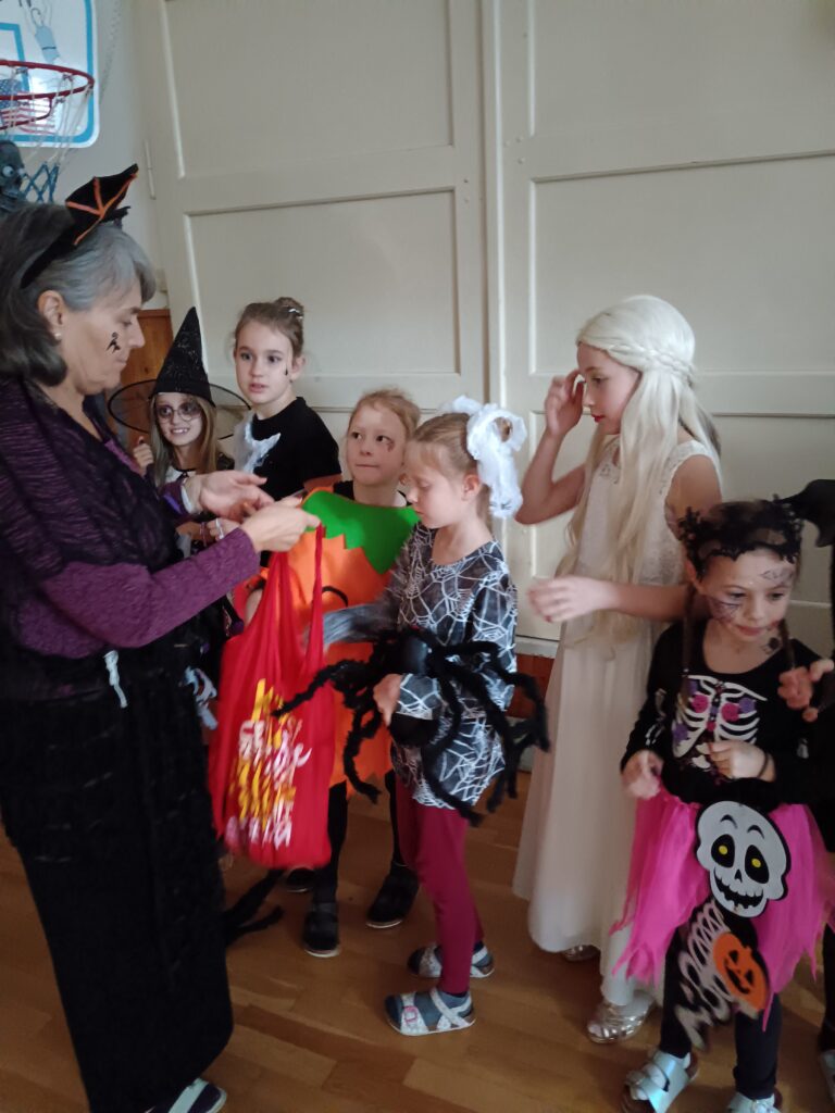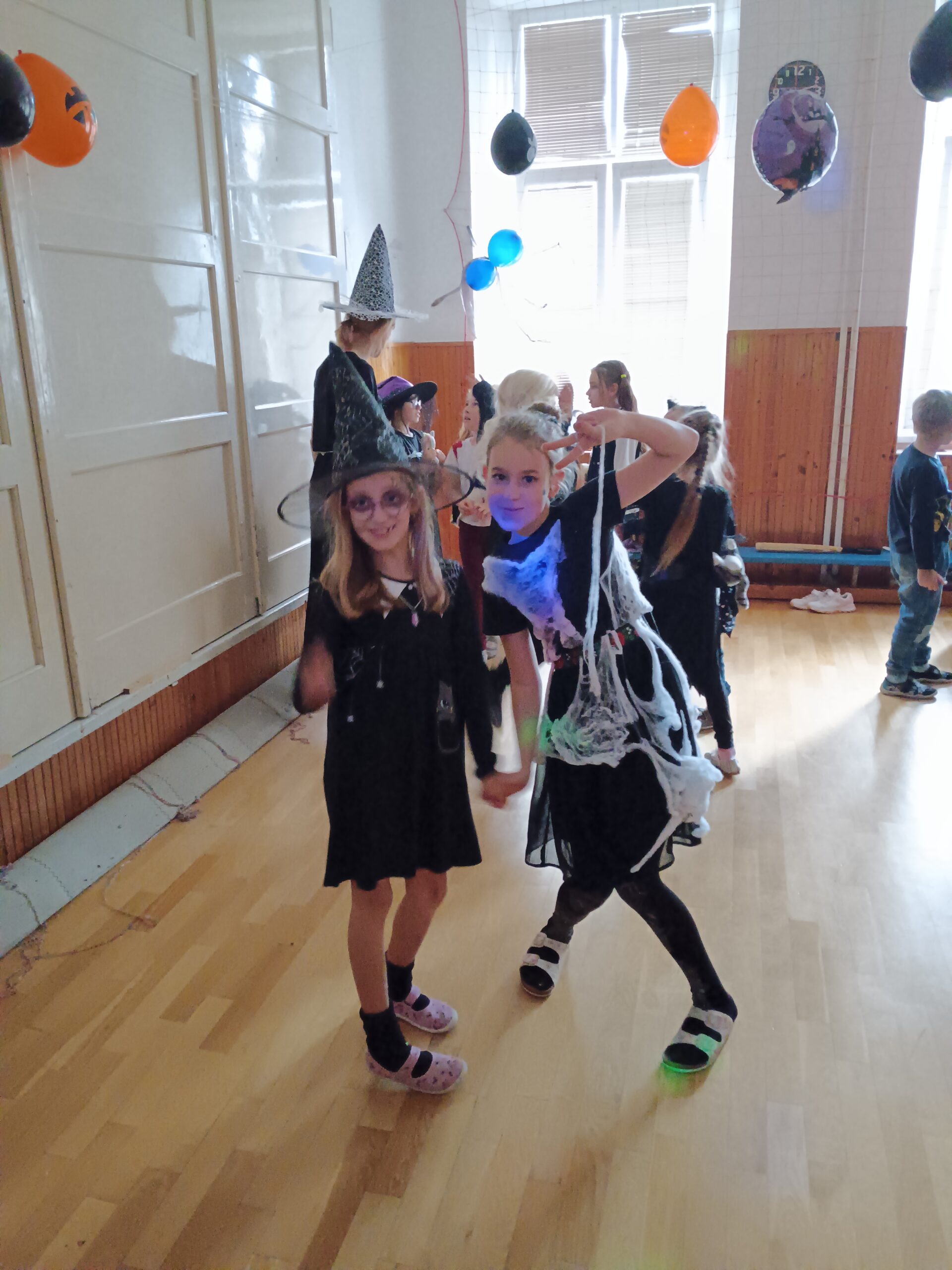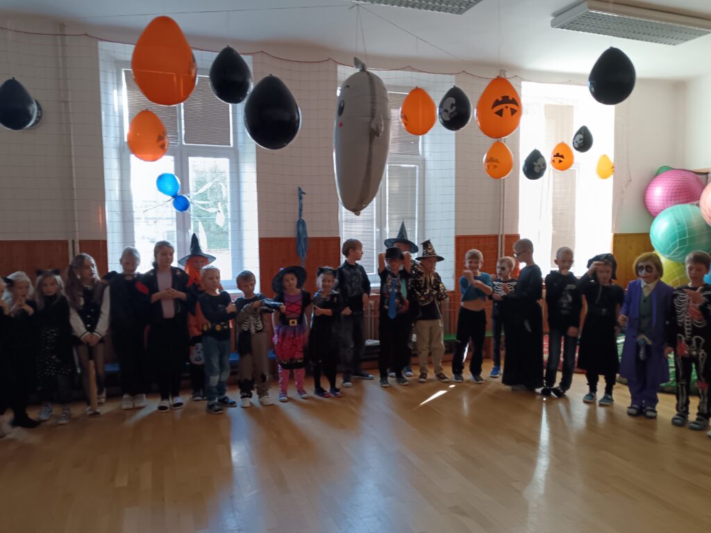 Ve čtvrtek 30. října se u nás ve škole konal Halloween. Od rána se pro škole pohybovali kostlivci, čarodějnice a čarodějové, upíři a jiná strašidla. Odpoledne byl ve školní družině připraven zábavný program a diskotéka. Tělocvična se proměnila v sál plný soutěží a tance, kde si strašidla mohla vyzkoušet svou obratnost v různých disciplínách.
