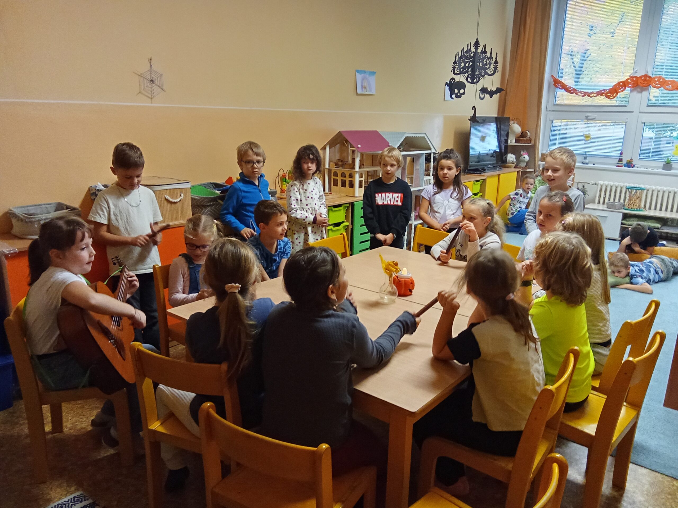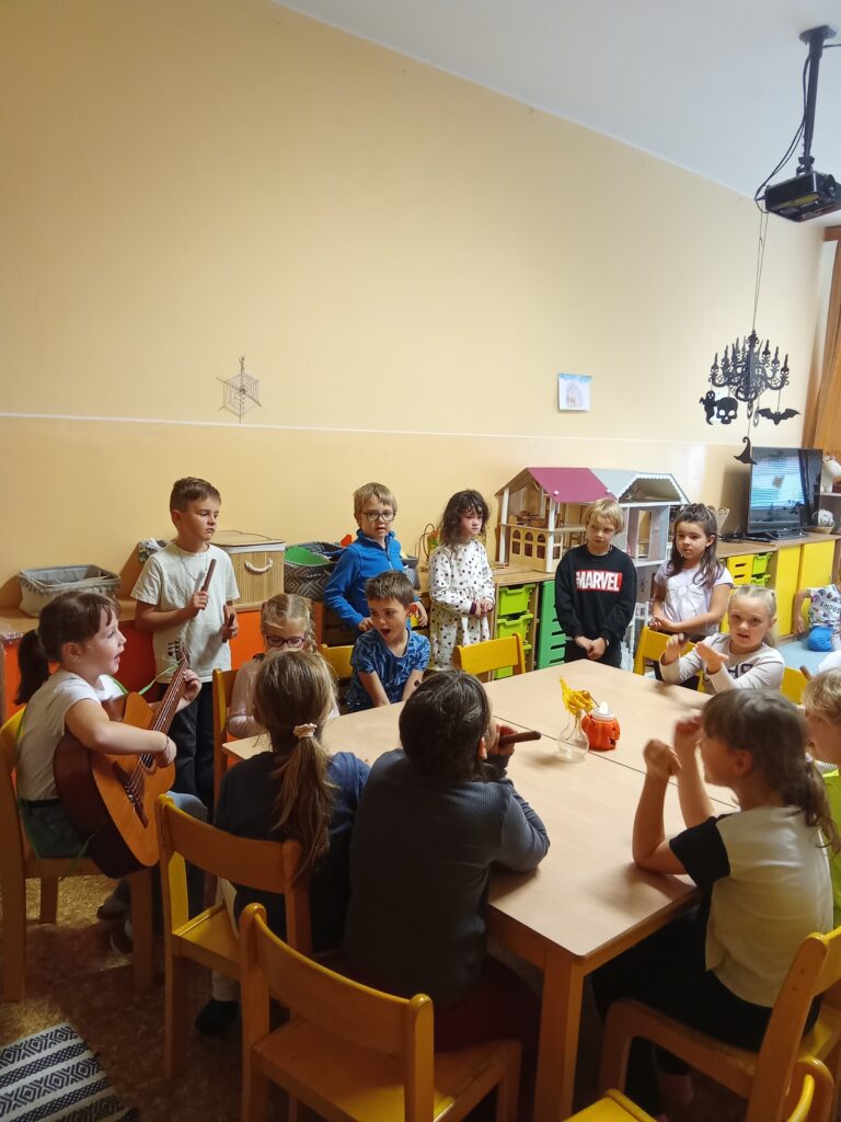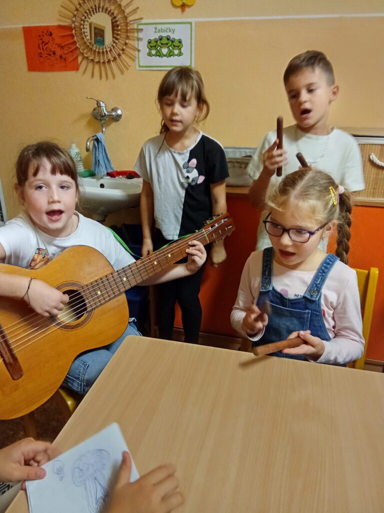 Emma Hynková přinesla do školní družiny kytaru. Hrála nám různé známé písně a všechny děti s chutí zpívaly. Moc se nám to odpoledne líbilo.